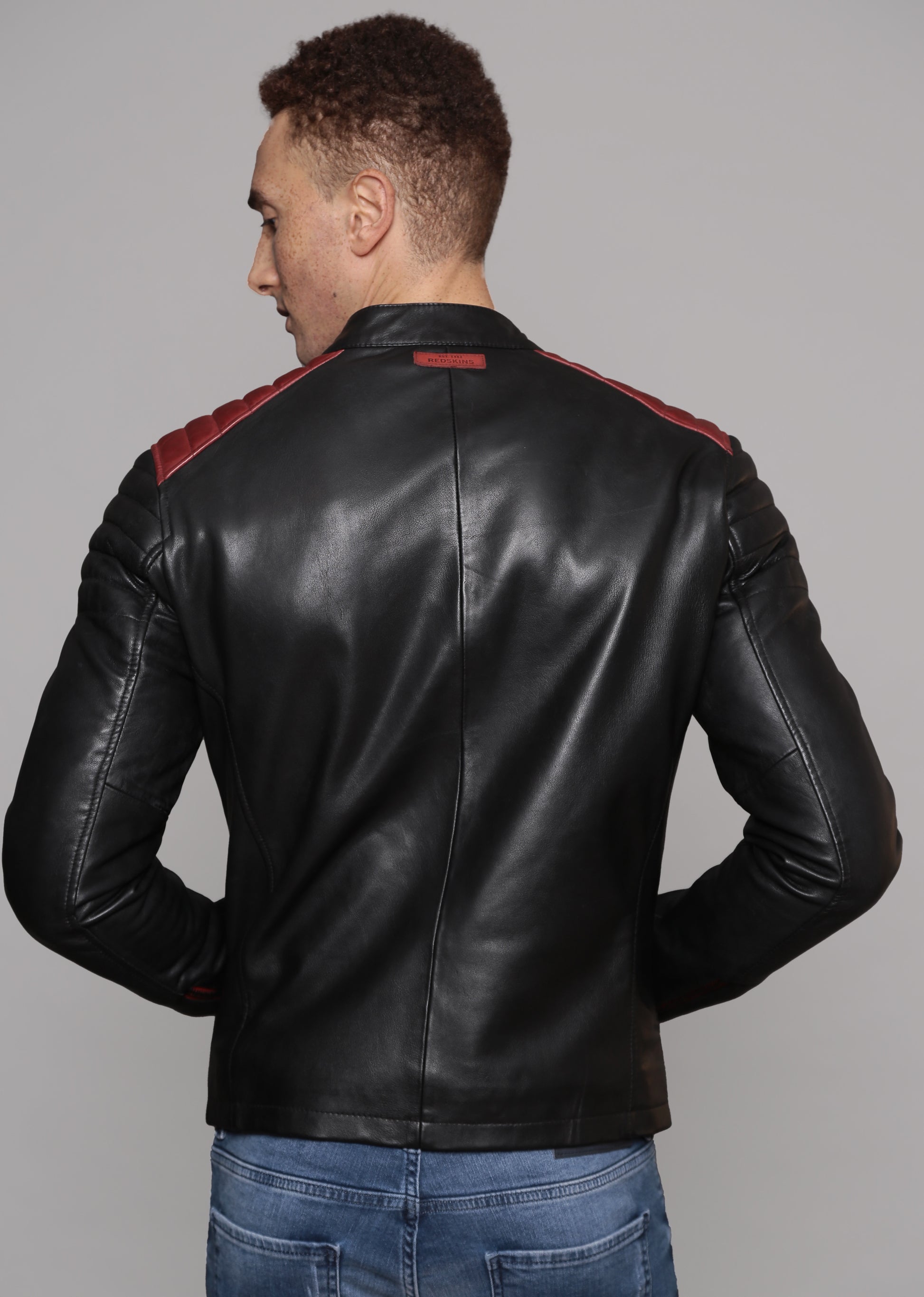 Le blouson en cuir d'agneau DILECTA STONER de chez REDSKINS se distingue par une coupe près du corps et une allure motarde. Ce modèle est doté d'un col mao à pression, des empiècements striés, des surpiqûres, des poches zippées qui font de lui un véritable indispensable du vestiaire masculin.