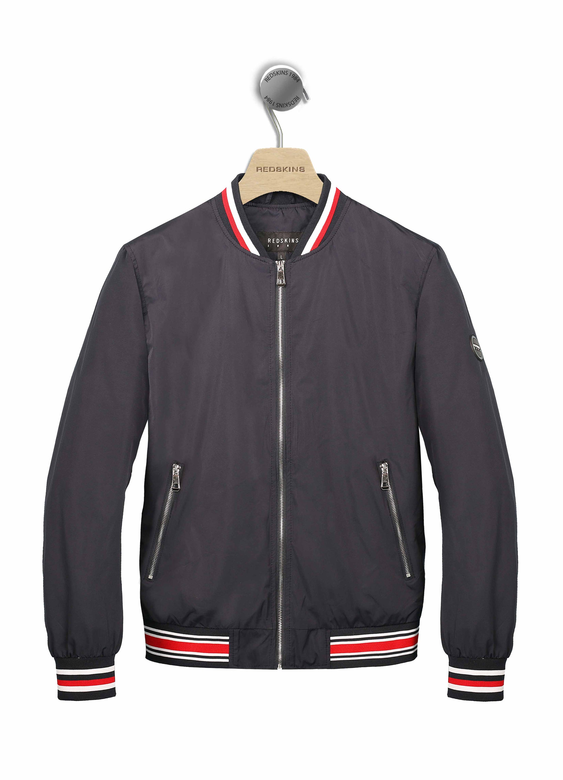 Le blouson JUAN SANDERS à col mao est un incontournable de la saison de la collection REDSKINS. Il est confectionné dans un tissu 100 % polyester. Cette pièce est dotée d'une fermeture zippée, de deux poches zippées ainsi que des bords côte tricolores à la taille et aux poignets. Le blouson est orné d'un badge sur le bras gauche et bénéficie d'une coupe décontractée.