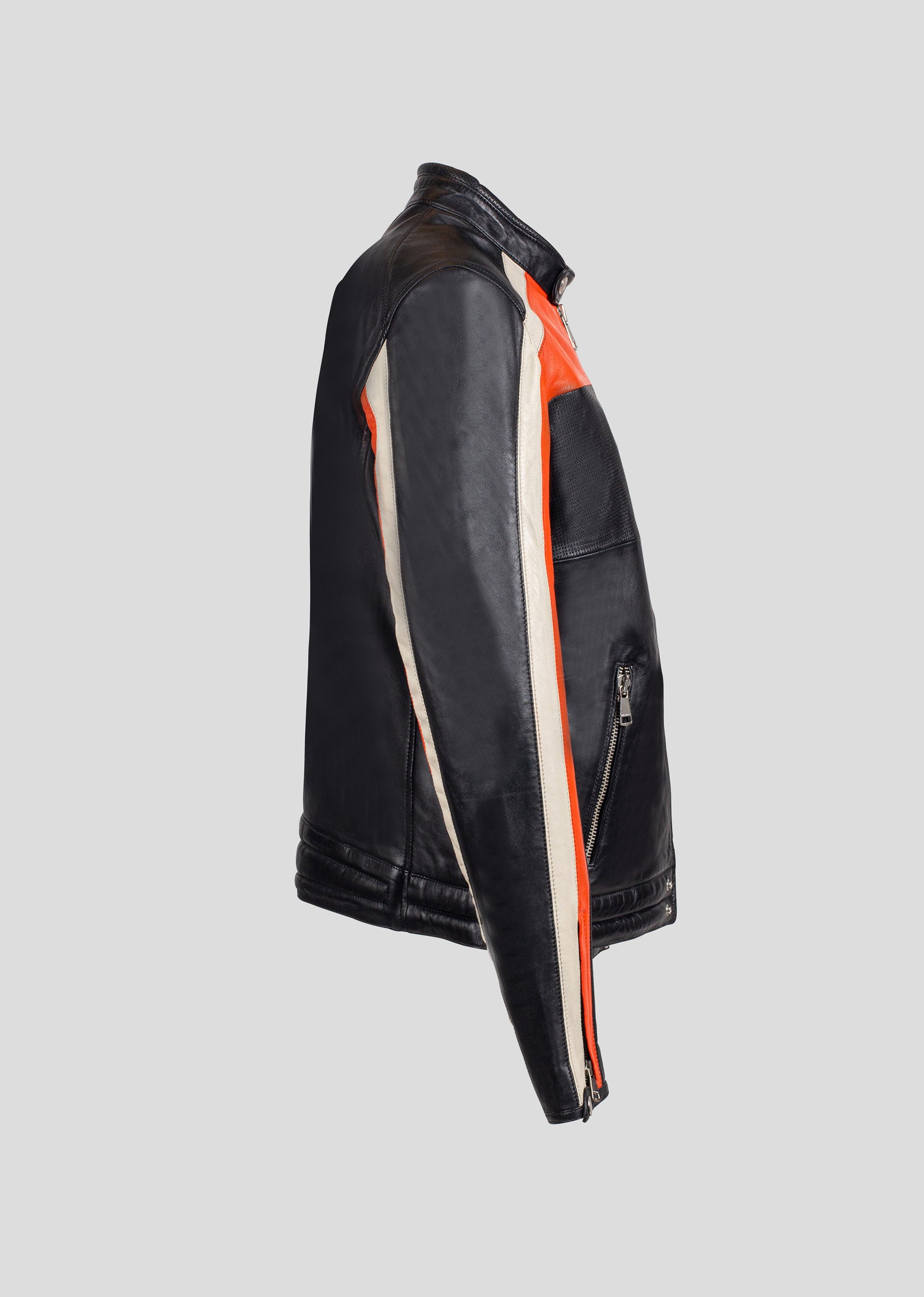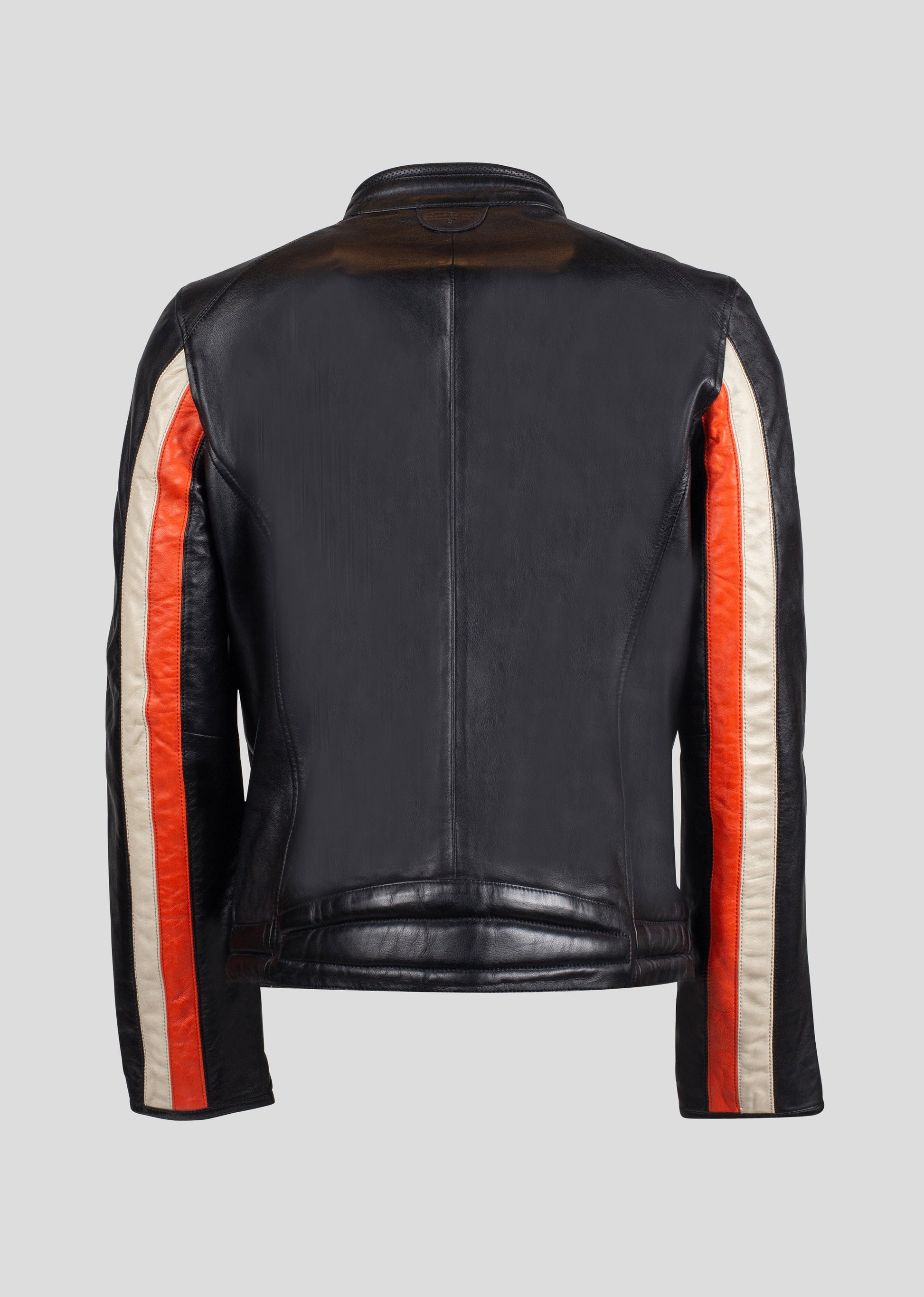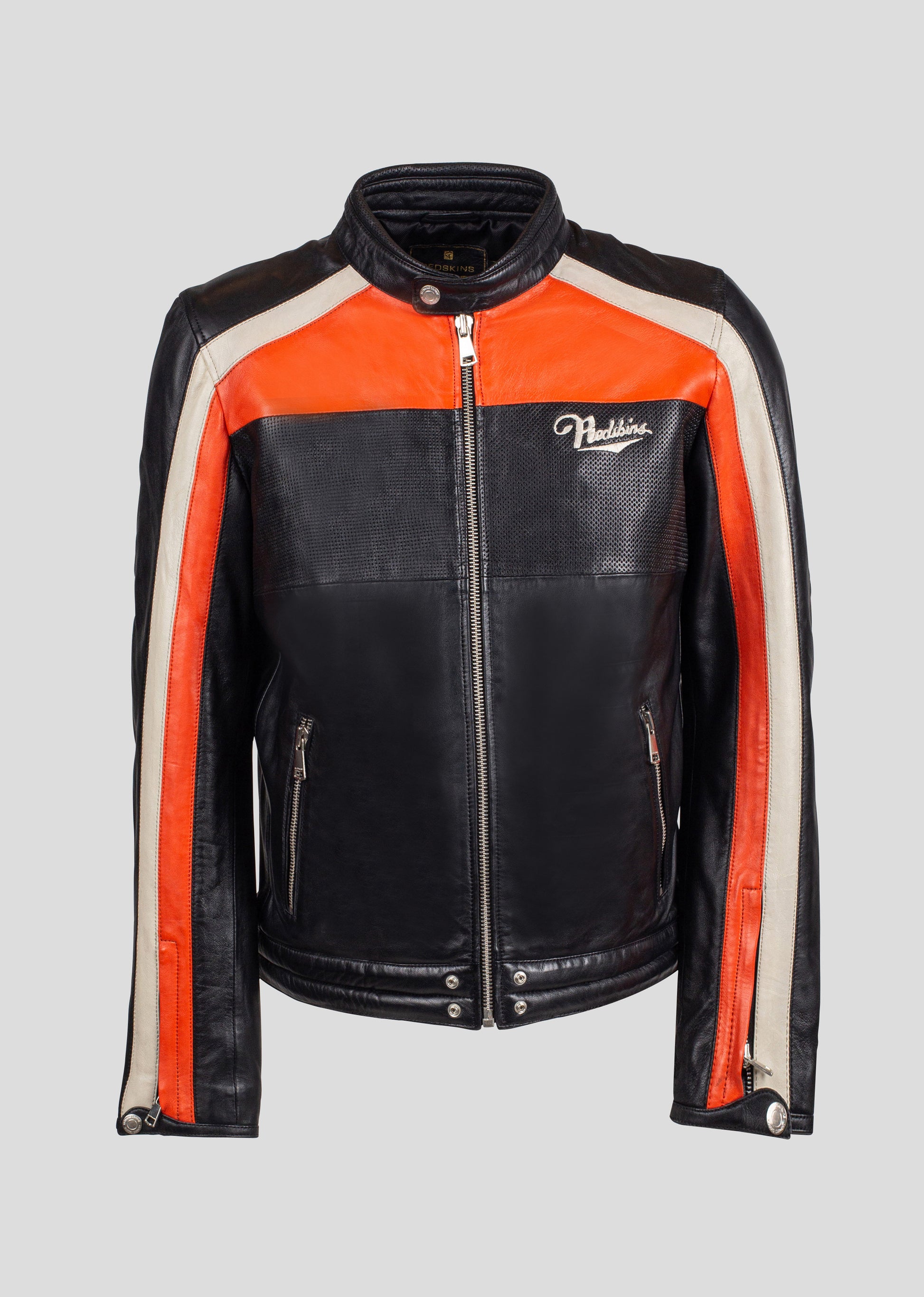 La veste en cuir de mouton NOTY TRIPWAY de REDSKINS est un must have de la mi-saison. Ses détails, son originalité et sa qualité lui confèrent l'attribut d'un look réussi. Son atout ? c'est sa coupe parfaitement droite, ses couleurs contrastantes ainsi que l'impression du logo sur le dos et les visuels côté coeur. Elle est dotée d'un col mao à pression, de deux poches zippées et des zips au niveau des poignets. Elle dispose de multiples boutons pression sur le bas et se ferme grâce à un zip à l'avant.