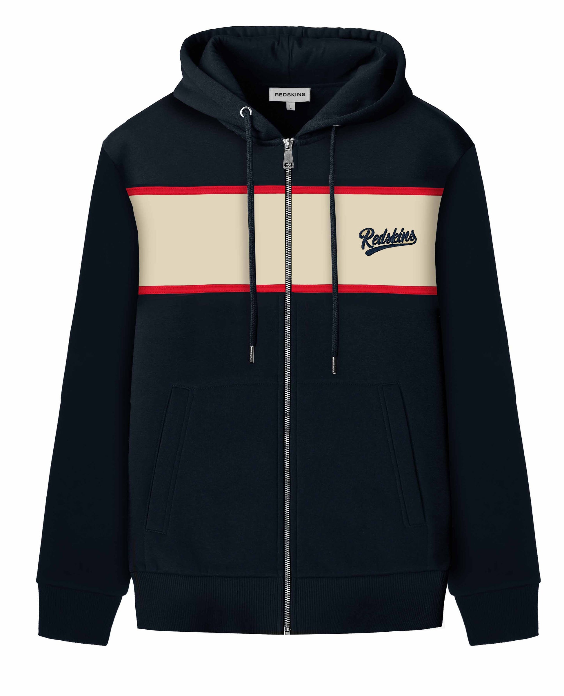Le sweat zippé OWEN POSTER de la collection REDSKINS possède une capuche avec lien de serrage et deux poches latérales. On trouve sur le côté gauche de la poitrine une inscription "REDSKINS " sur une bande bicolore contrastante, ainsi que des bords côtes au niveau des poignets et de la taille pour un confort optimisé. Simple et original, il saura s'adapter à tous vos looks. Composition : 65 % coton - 35 % polyester.