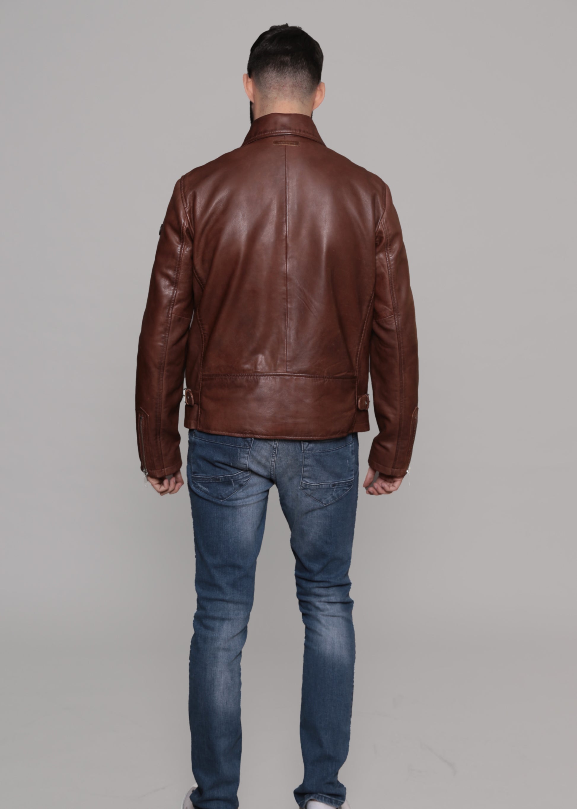 Le RIDER STONER by REDSKINS est un classique de la garde-robe qui se marie parfaitement avec toutes vos tenues. Votre veste biker en cuir d'agneau est disponible en col revers à boucle de resserage avec fermeture zippée et en manches longues zippées aux poignets. Entièrement doublée, la veste est dotée de trois poches zippées et des galons sur les côtes.