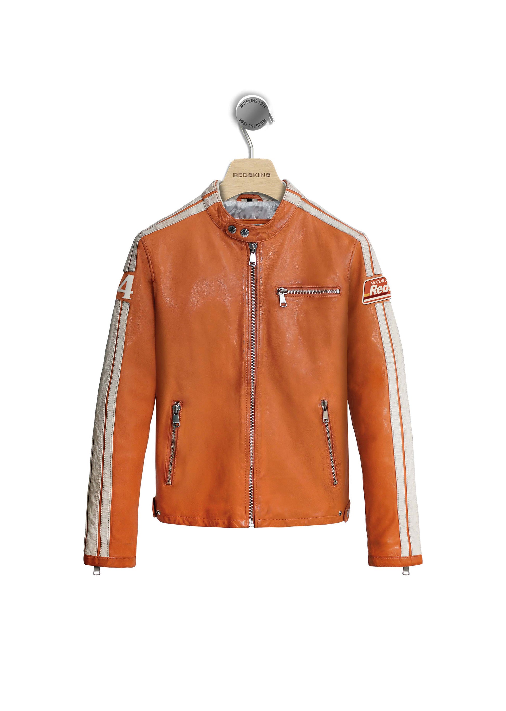 La veste en cuir DOGGER BARCELONA est née sur les circuits de course. Sa carrure est soulignée par des bandes qui longent les manches. Un zip métallique complète son style singulier et des patchs REDSKINS placés sur les manches, rappellent l'identité de cette pièce singulière et pleine de caractère.Composition:Cuir de Mouton