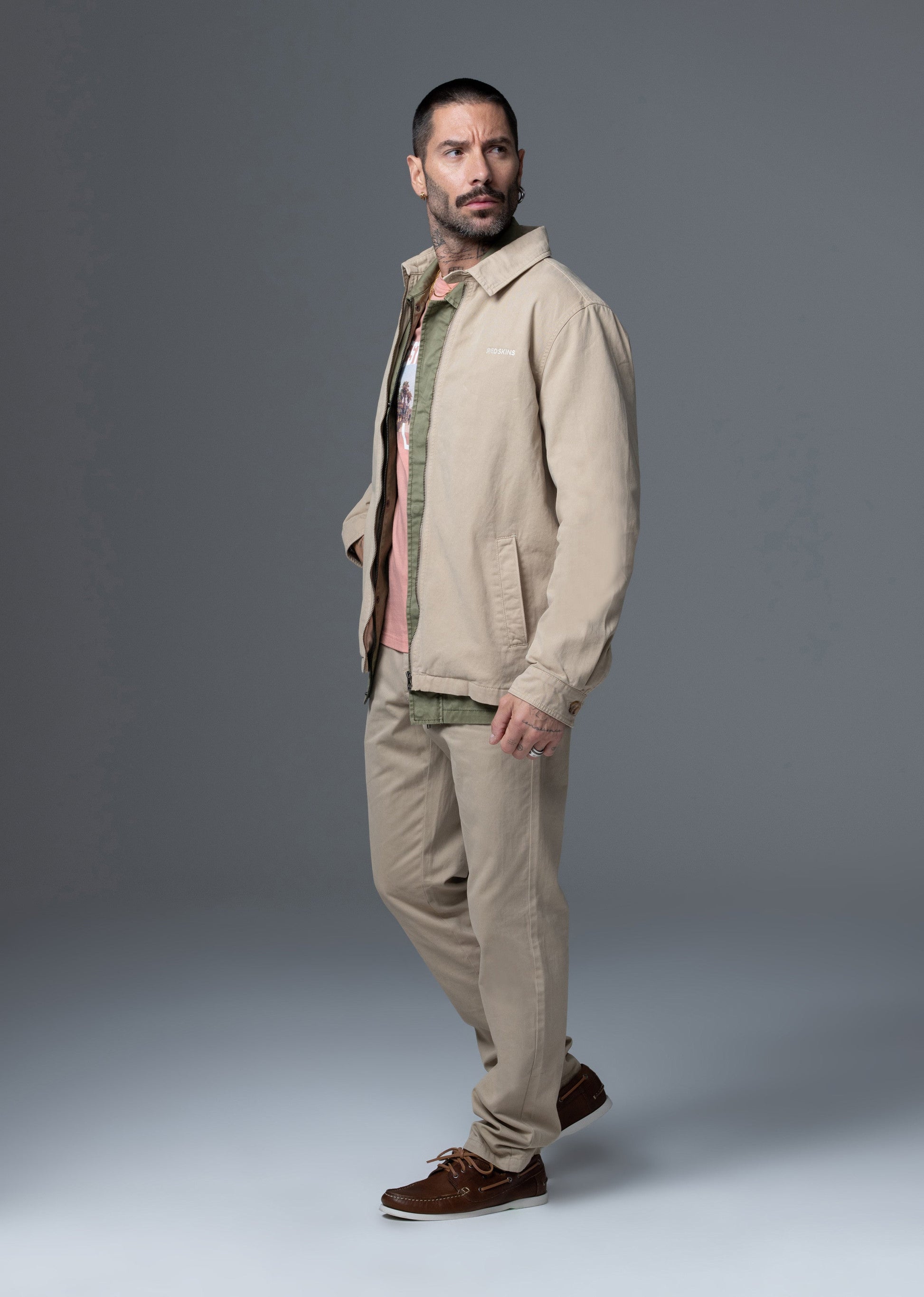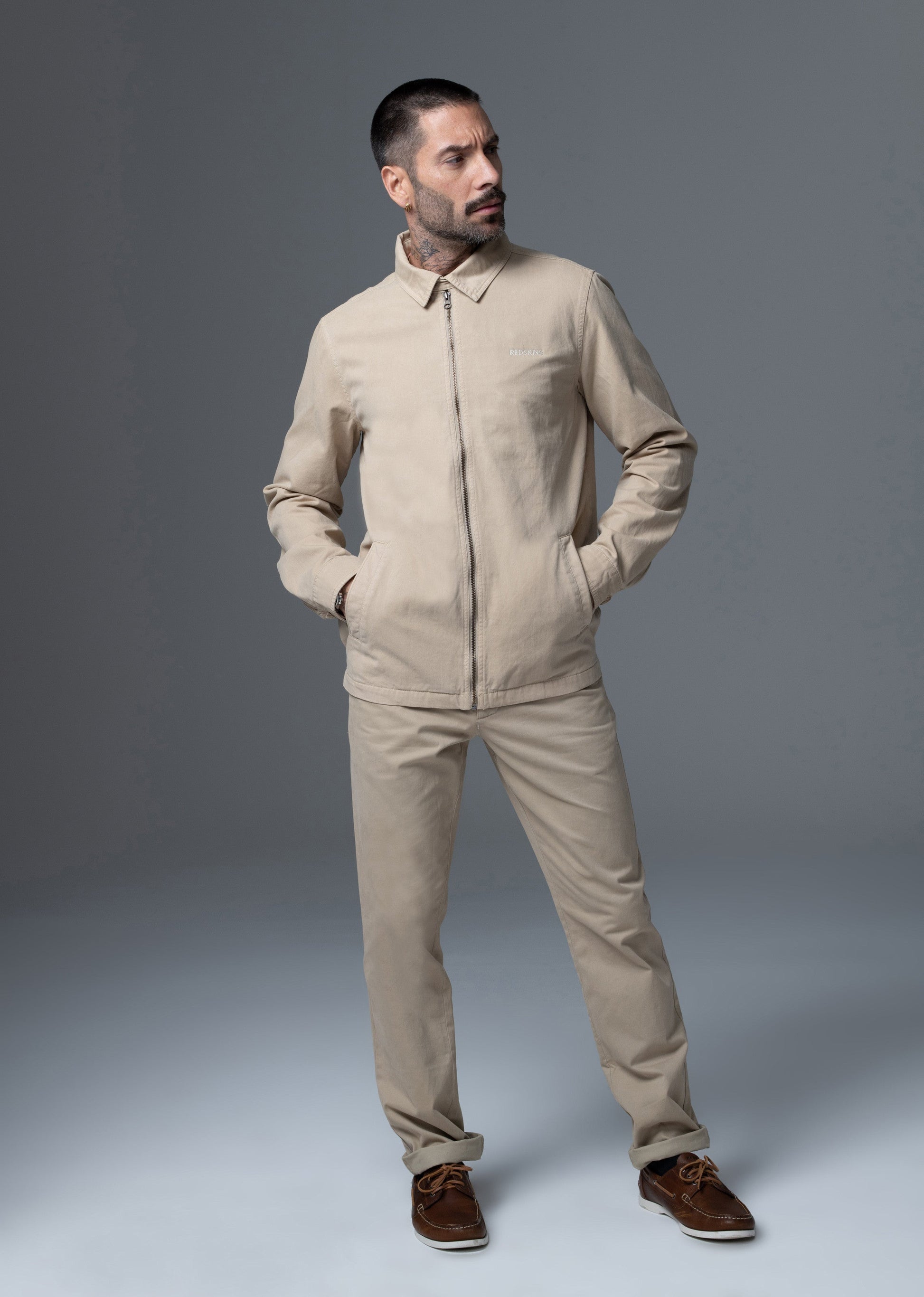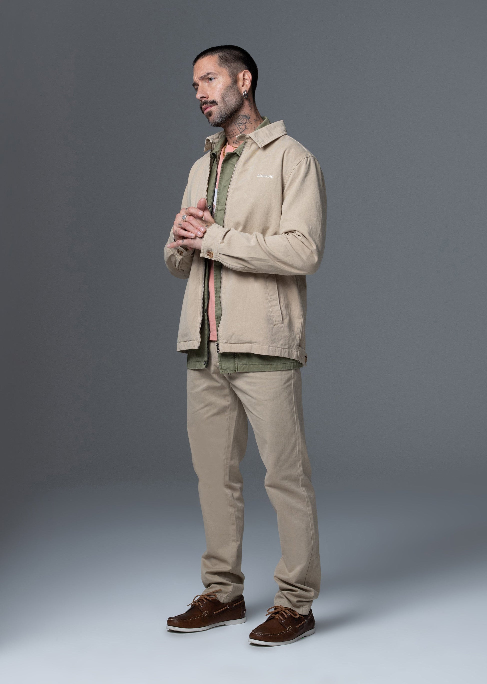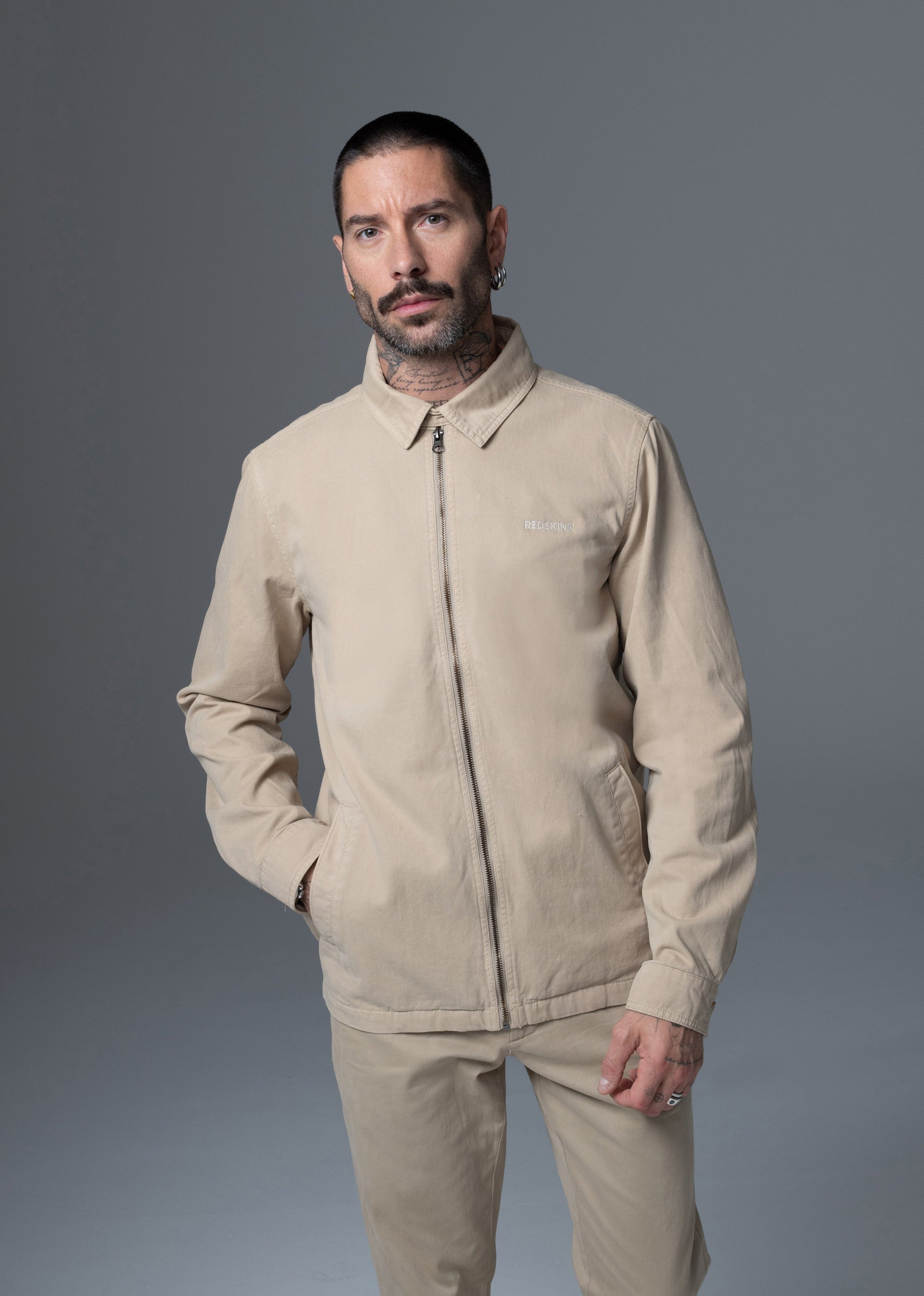 • Veste classique manches longues REDSKINS • Modèle "STORY JAGUARD" • Col chemise • Poches fonctionnelles • Etiquette tissée avec le logo REDSKINS •Sergé 100% Coton