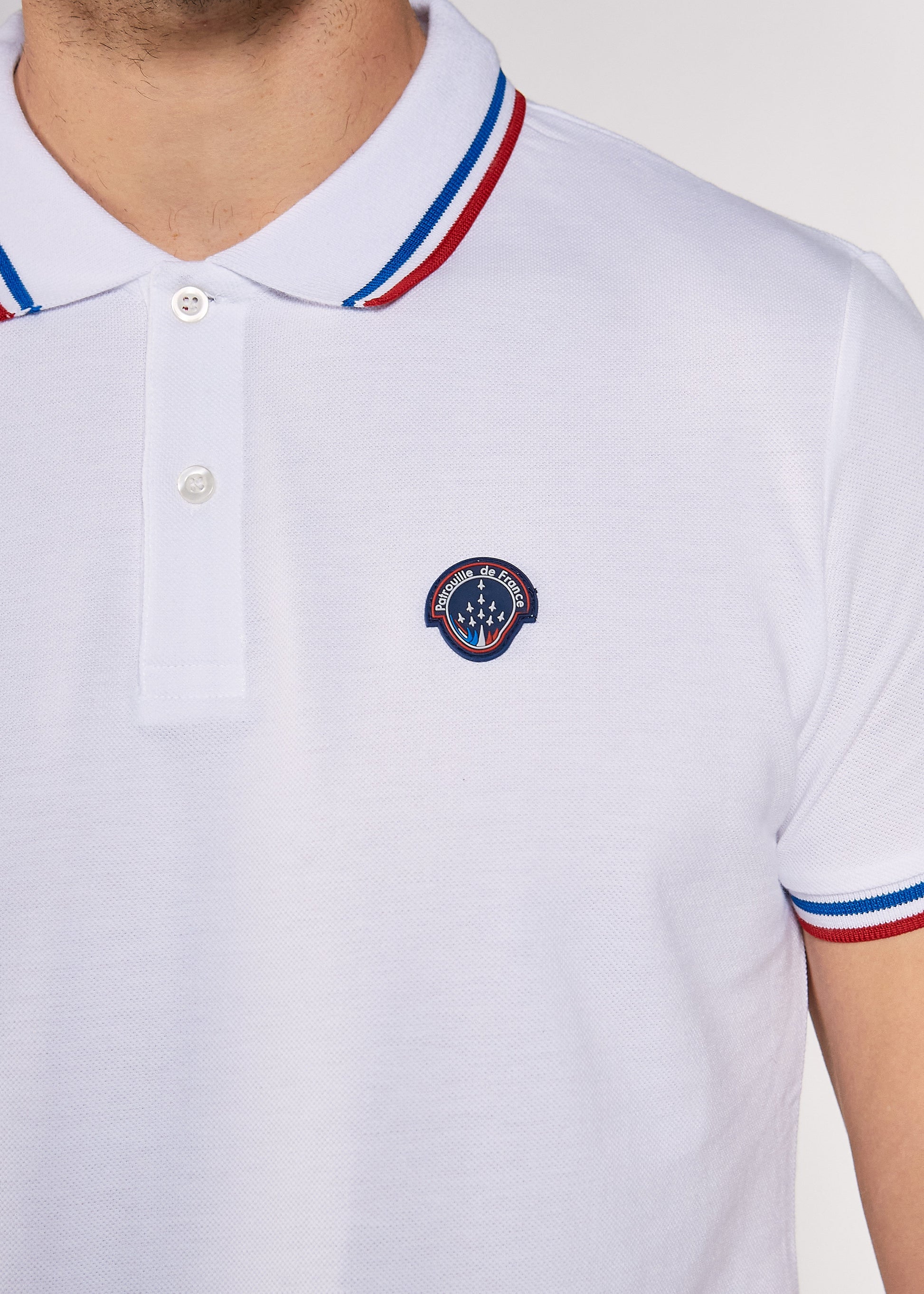 Le polo en coton PUMA KENYA est un classique du vestiaire masculin revisité aux couleurs de la Patrouille de France. Cintré et à manches courtes, son col chemise au liseret tricolore s’ouvre sur une patte de boutonnages et rappelle l'emblème de l'unité brodé à la poitrine.