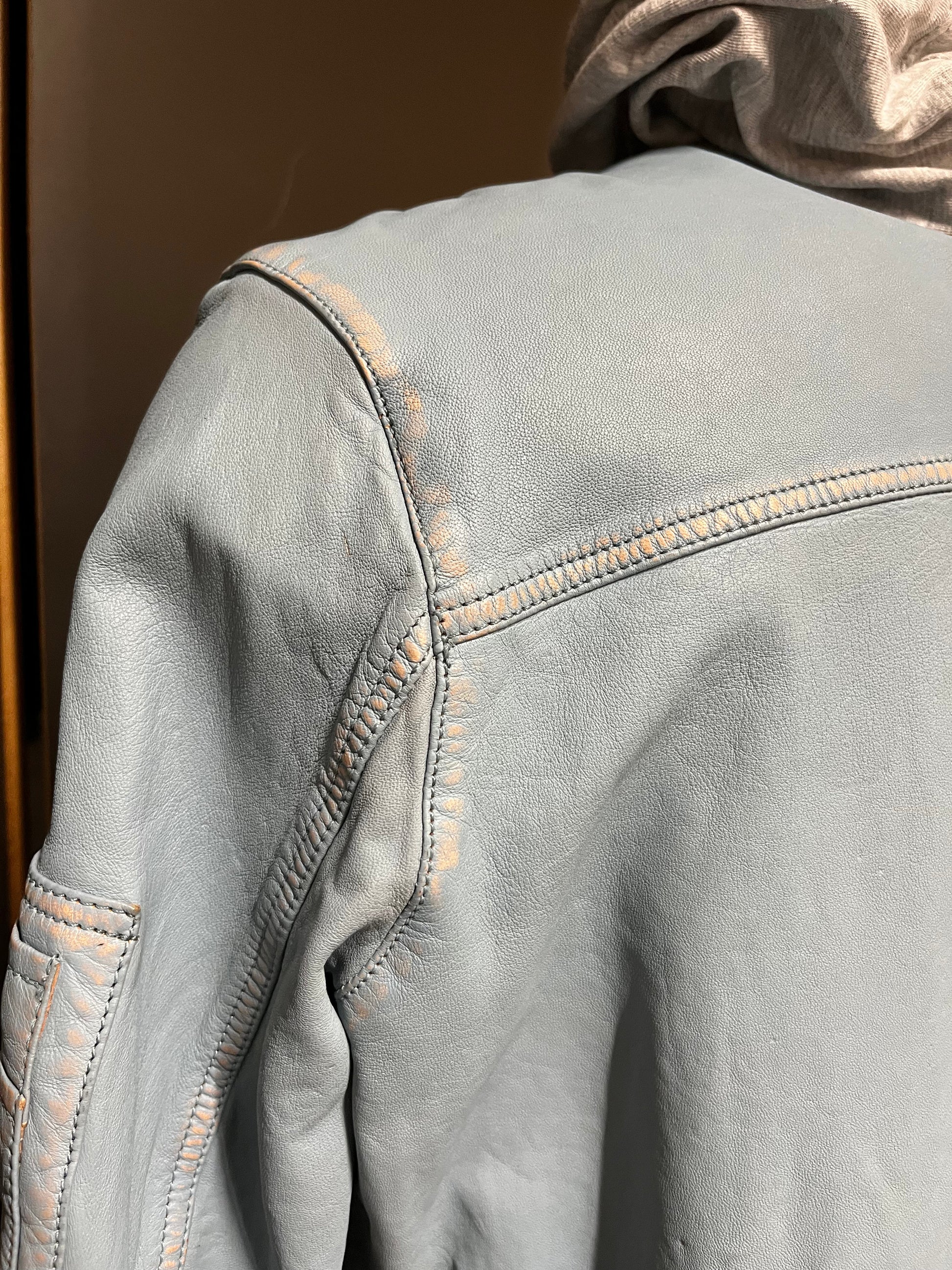 Nos vestes en cuir taillent petit, si vous avez un doute entre deux tailles, choisissez la taille du dessus.