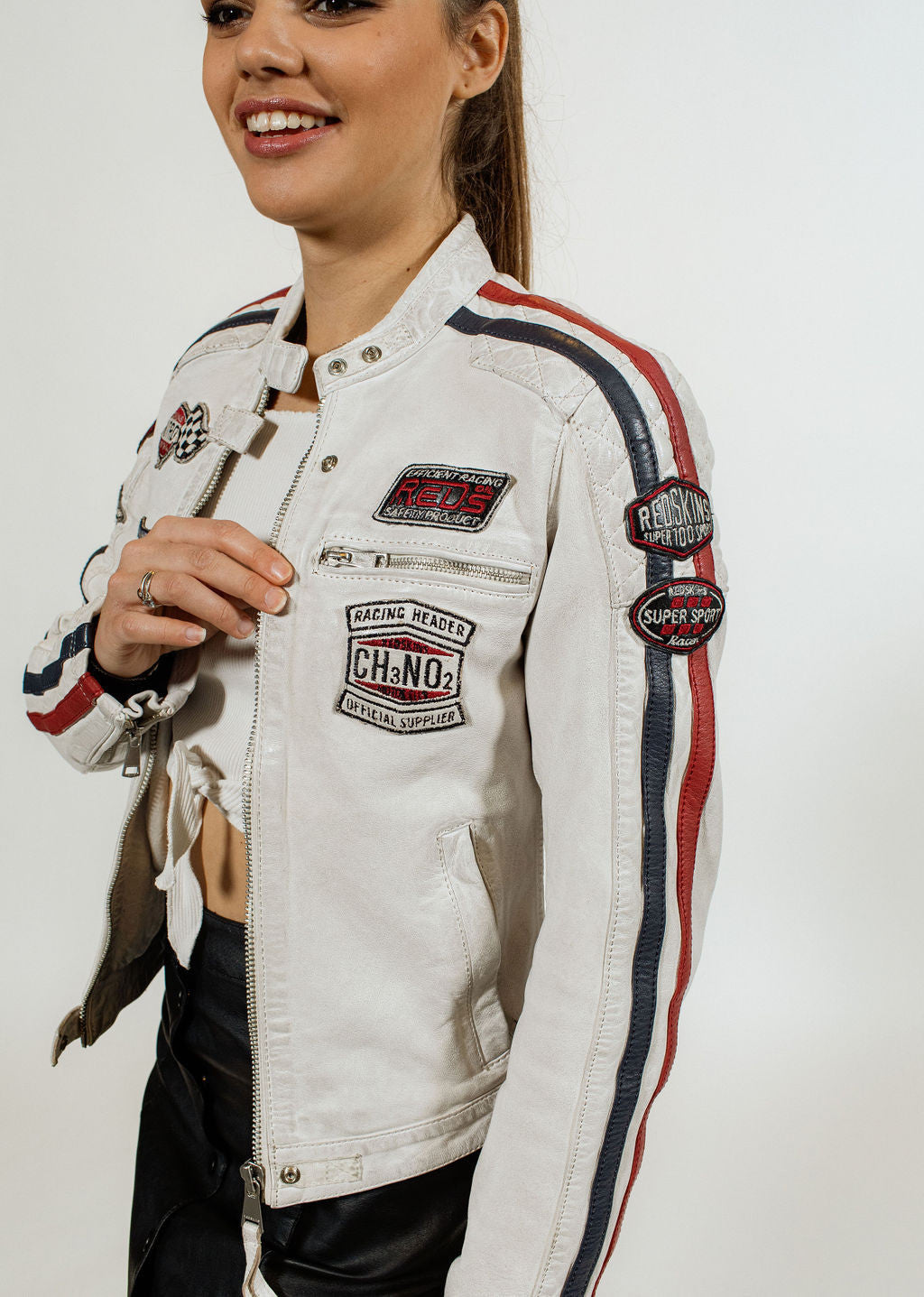 Le blouson SLADE CALISTA révélera votre âme de motarde. Un classique de l'univers REDSKINS, inspiré des circuits de course, avec une coupe droite idéale pour vos virées en moto aussi bien que vos balades piétonnes. Il arbore des écussons style biker rétro, quatre sur la face avant, deux sur le bras droit et deux sur le bras gauche. Au niveau des coudes, épaules et bas du dos nous trouvons un aspect matelassé dû aux surpiqûres. Il s'agit d'un must have pour toutes ! Composition : cuir de Mouton