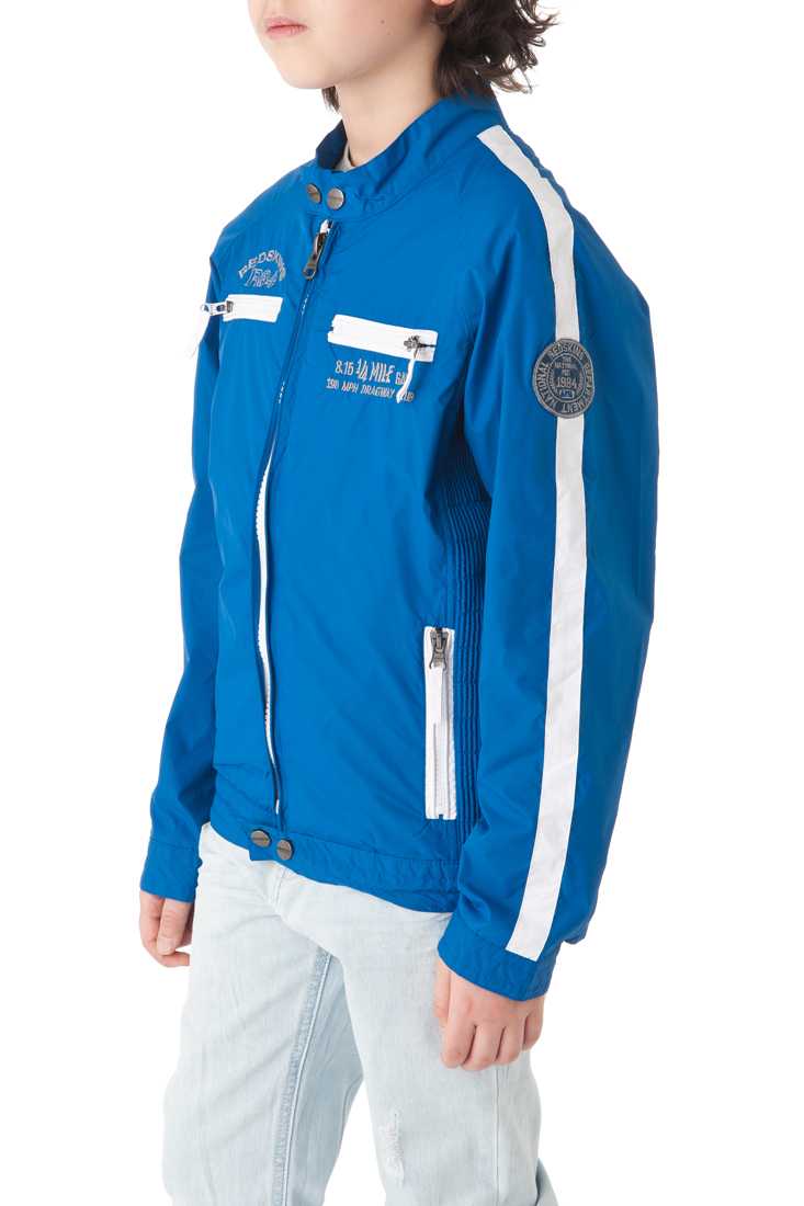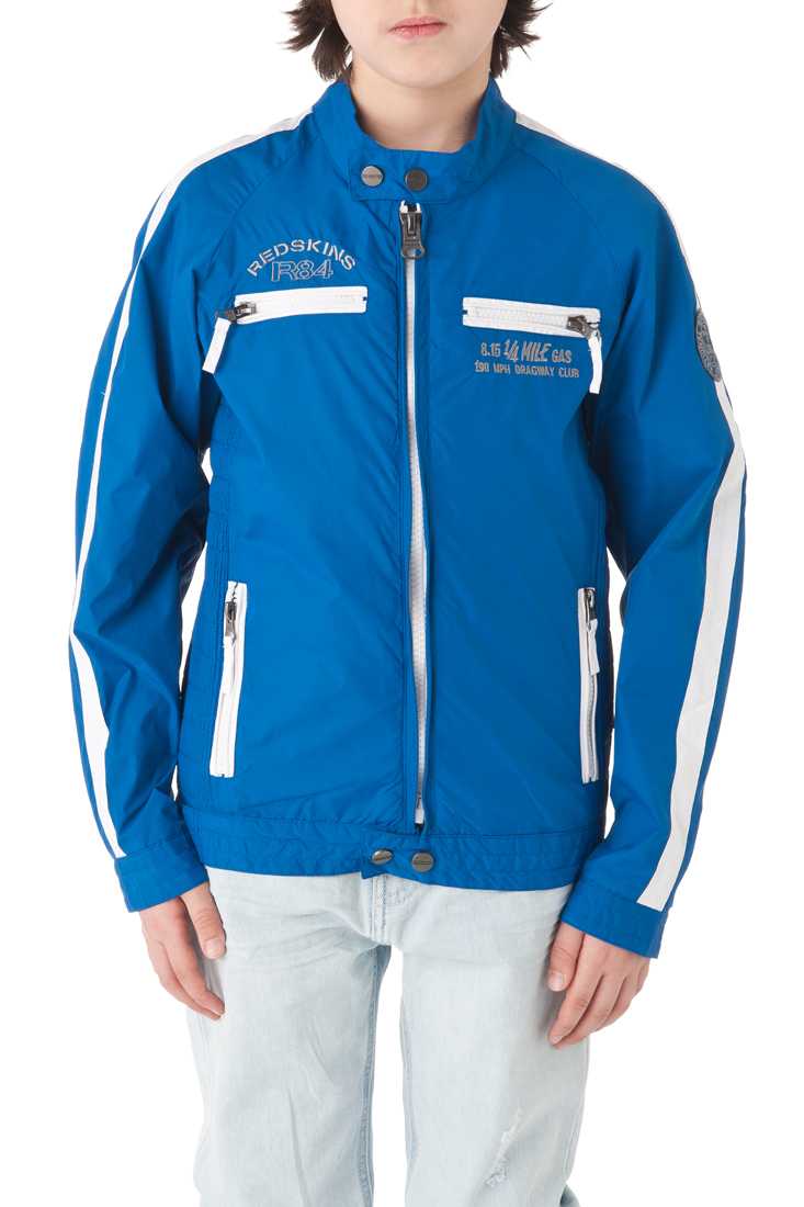 Blouson Fermeture zippée devant – Col moto avec boutons pression – 2 poches poitrine et 2 poches côté zippées – Sérigraphie et Broderie dans le dos.